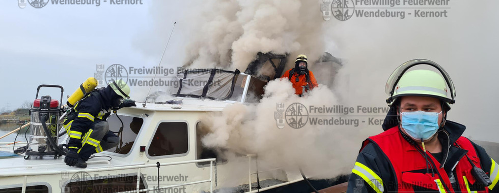 Heute Mittag wurden wir zur Unterstützung der Feuerwehr Bortfeld in die Marina gerufen, dort solle ein Boot im Hafen brennen. Schon während der Anfahrt konnten sich zwei Trupps mit schwerem Atemschutz ausrüsten und sofort bei Eintreffen an der Einsatzstelle die Brandbekämpfung mit 2 C-Rohren im Innenangriff aufnehmen. Dieses gestaltete sich anfangs als sehr schwierig, da durch die enorme Rauchentwicklung keine Sicht innerhalb des Boots vorhanden war.