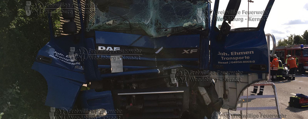 Auf der Anfahrt wurde uns die Lage von der Polizei bestätigt. An dem Unfall beteiligt waren 2 LKW und 2 PKW. Ein LKW Fahrer war noch in seinem Fahrzeug eingeklemmt.